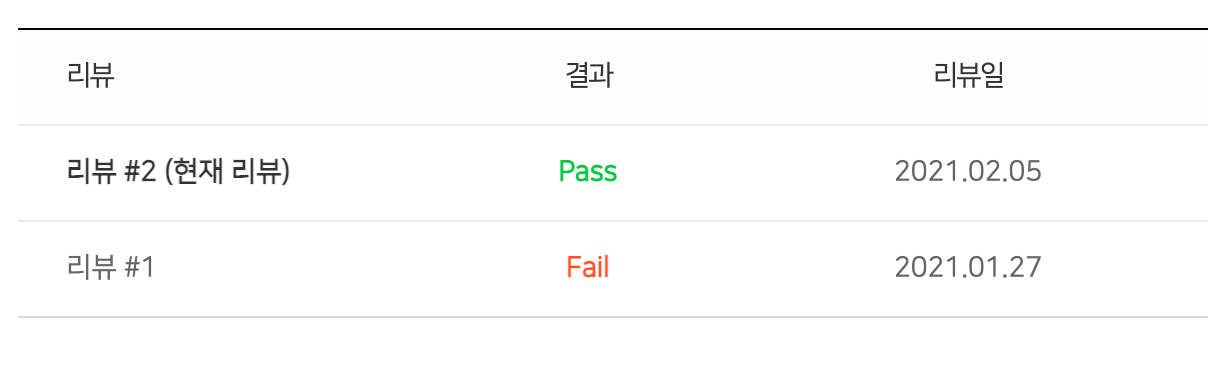 총 두번에 걸쳐서 통과를 했네요. 생각보다 코드 제출 후 리뷰 및 피드백을 받는 기간이 길었네요. 평가하시는분이 많이 없으신듯 합니다. ㅠ