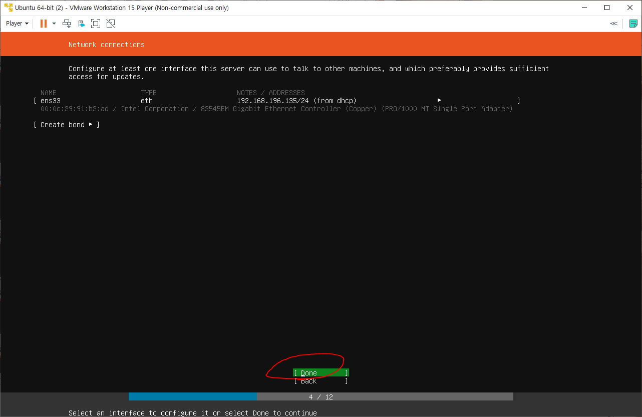 제 가상 머신 IP는 192.168.196.136로 나와 있지만 각자 컴퓨터마다 다를 수 있습니다.