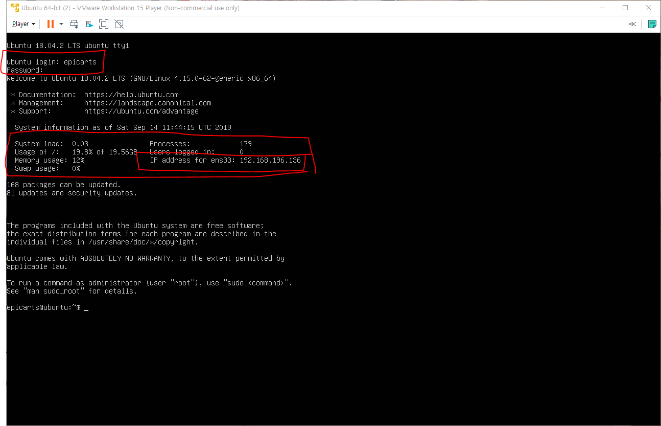 터미널로 SSH 접속을 위해서 기억해 줍니다. (앞으로 접속할 우분투 서버 아이피입니다.)