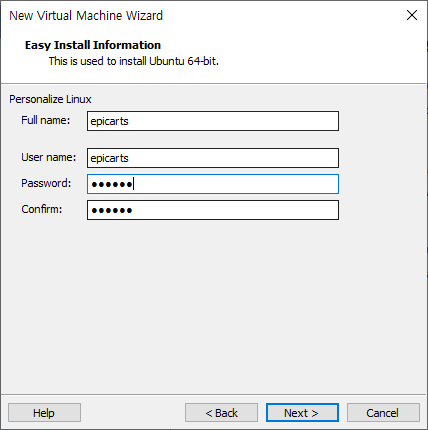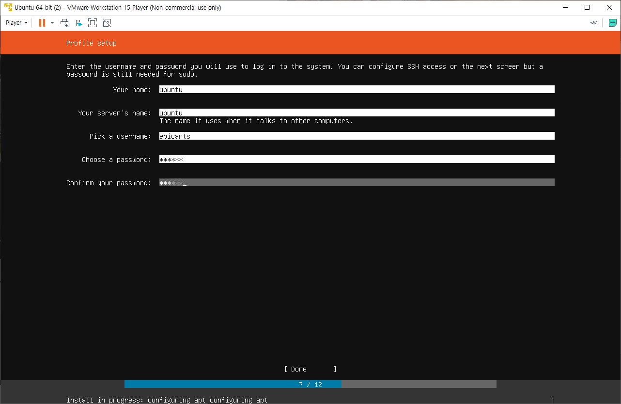 서버에 로그인할 때 사용할 아이디 및 패스워드를 설정할 수 있습니다.