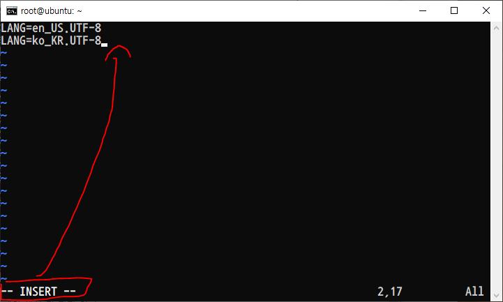 편집기로 locale 파일을 열어 줍니다.