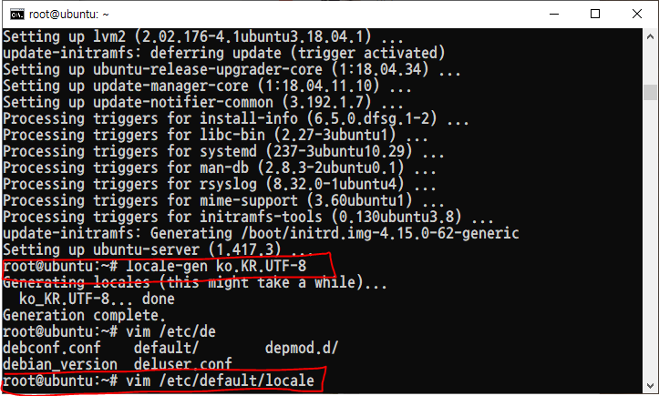 locale-gen ko.KR.UTF-8 명령어로 로케일을 생성해 줍니다.