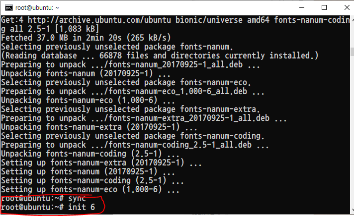 init 6 은 재부팅 명령어입니다.(reboot 명령어 도 가능)