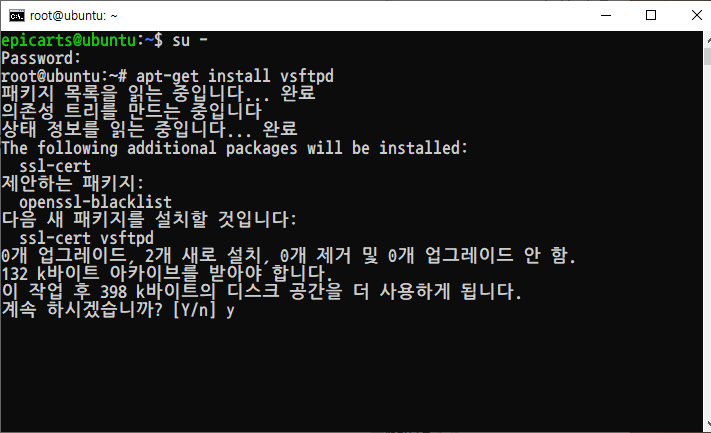 위의 명령어를 쳐서 vsftp 를 설치해 줍니다.