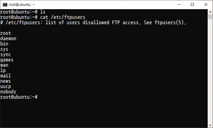 이제 변경을 해주었으니 ftp 서버를 재시작하여 변경 옵션을 적용시켜 줍니다.