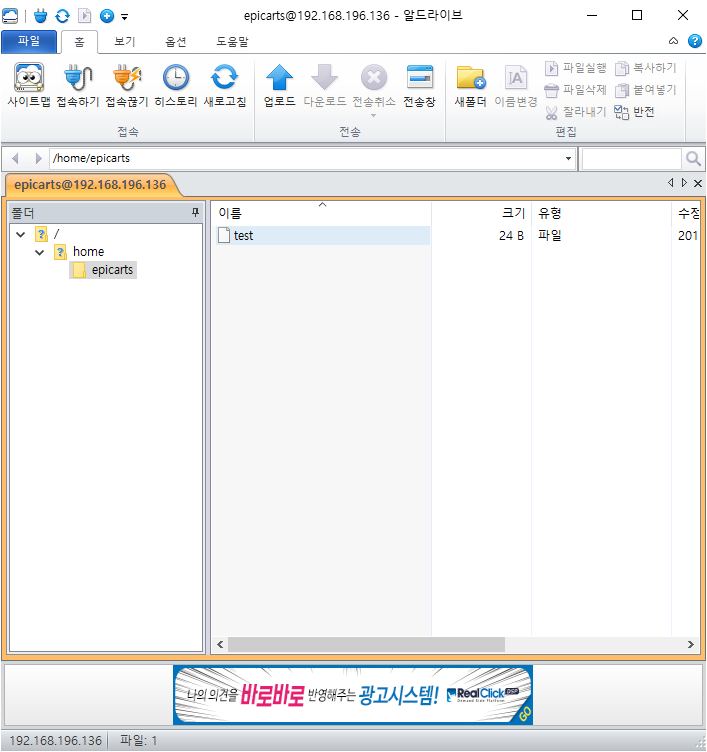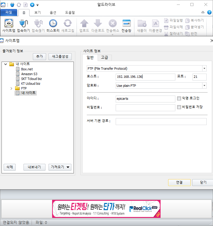 이제 알 드라이브를 이용하여 ftp 서버에 접속할 수 있습니다.