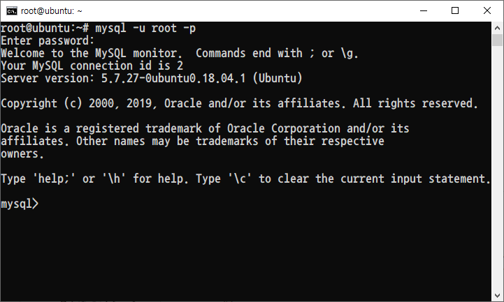 mysql -u root -p