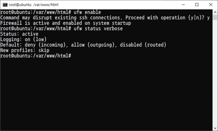 이것으로 UFW 설치를 마치겠습니다..!