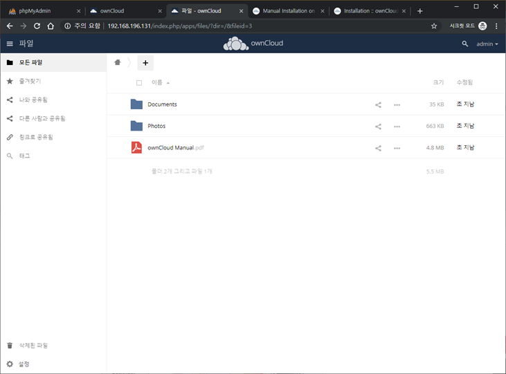 OwnCloud를 통해 손쉽게 클라우드 서버를 구축할 수 있습니다.