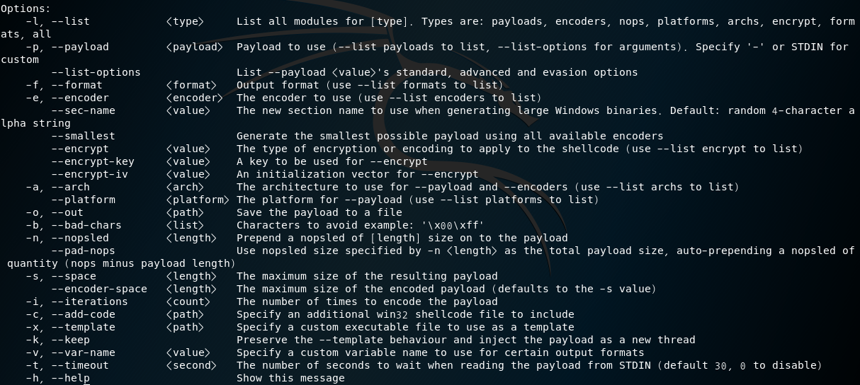 msfvenom -l p